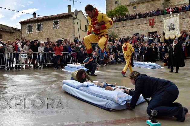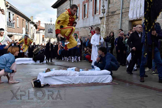 Maitines, Laudes, Prima, Tercia, Sexta, Nona, Vísperas y Completas son las horas litúrgicas que los monjes dedican a la alabanza divina. Coincidiendo, por influencia monacal,con esos momentos, los cofrades salen a las calles del pueblo a homenajear al Santísimo y lo hacen, como mejor saben, con danzas, que la danza es también rezo y oración. Suena recio el atabal y responde en son de burla el clac de las "Terrañuelas" de un Colacho que se opone a esta danza ritual con saltos torpes y desacompasados. Los niños insultan al Colacho con todo tipo de improperios y éste enarbola amenazante el zurriago y los persigue por calles y callejuelas.
