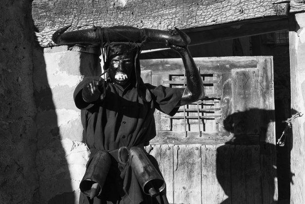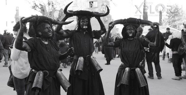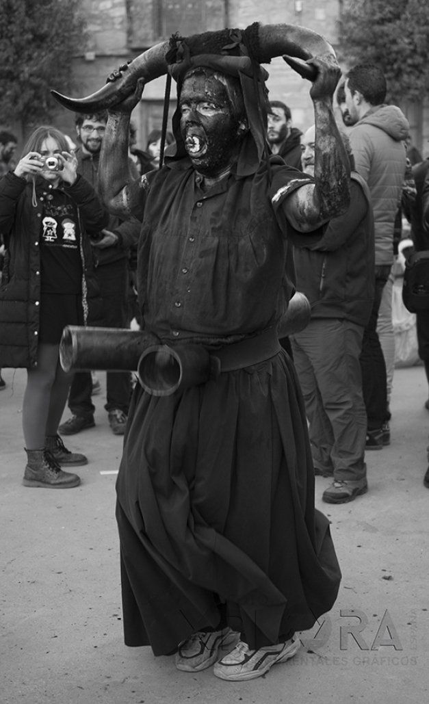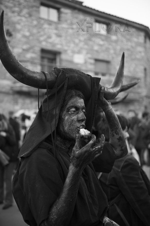 Al llegar a la plaza, correrán entre las mascaritas tratando de asustar a las mujeres y dar miedo con su estruendo y tiznando aquí y allá con su negro ungüento, sobre todo a las mozas. Una vez calmada la euforia, los diablos disfrazados recorrerán las frías calles al caer la tarde en una extraña e indefinible procesión que sólo se da en alguna pesadilla.