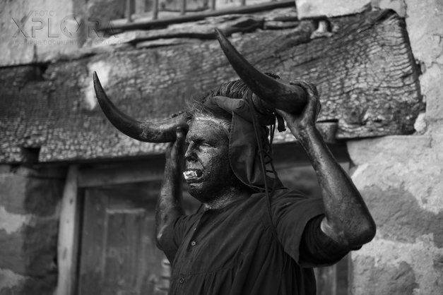Se visten con negras vestiduras hasta los pies, una blusa muy ancha sin mangas y un faldón; en la cabeza unos enormes cuernos de toro o de buey con almohadilla les serán atados a los hombros y la frente, todo ello tapado por un pañuelo negro hasta la nuca.